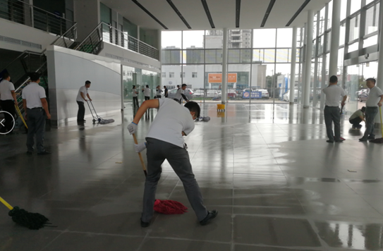 經(jīng)過(guò)長(zhǎng)達(dá)一個(gè)多月的時(shí)間,7月下旬展廳改造結(jié)束,在最后一項(xiàng)工程標(biāo)識(shí)安裝完工后,行政部組織全體人員開(kāi)始對(duì)展廳進(jìn)行衛(wèi)生大清理: